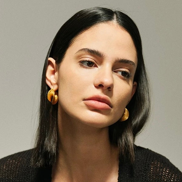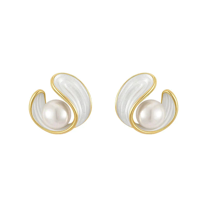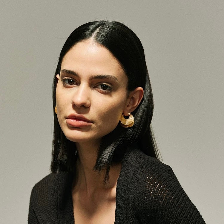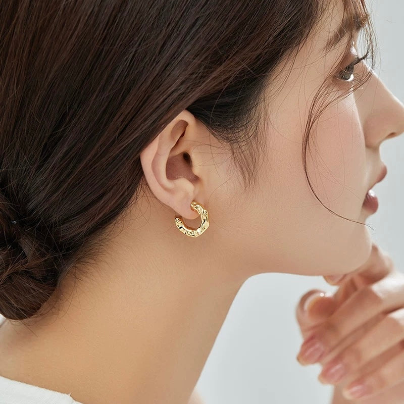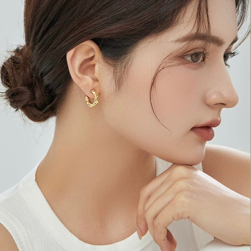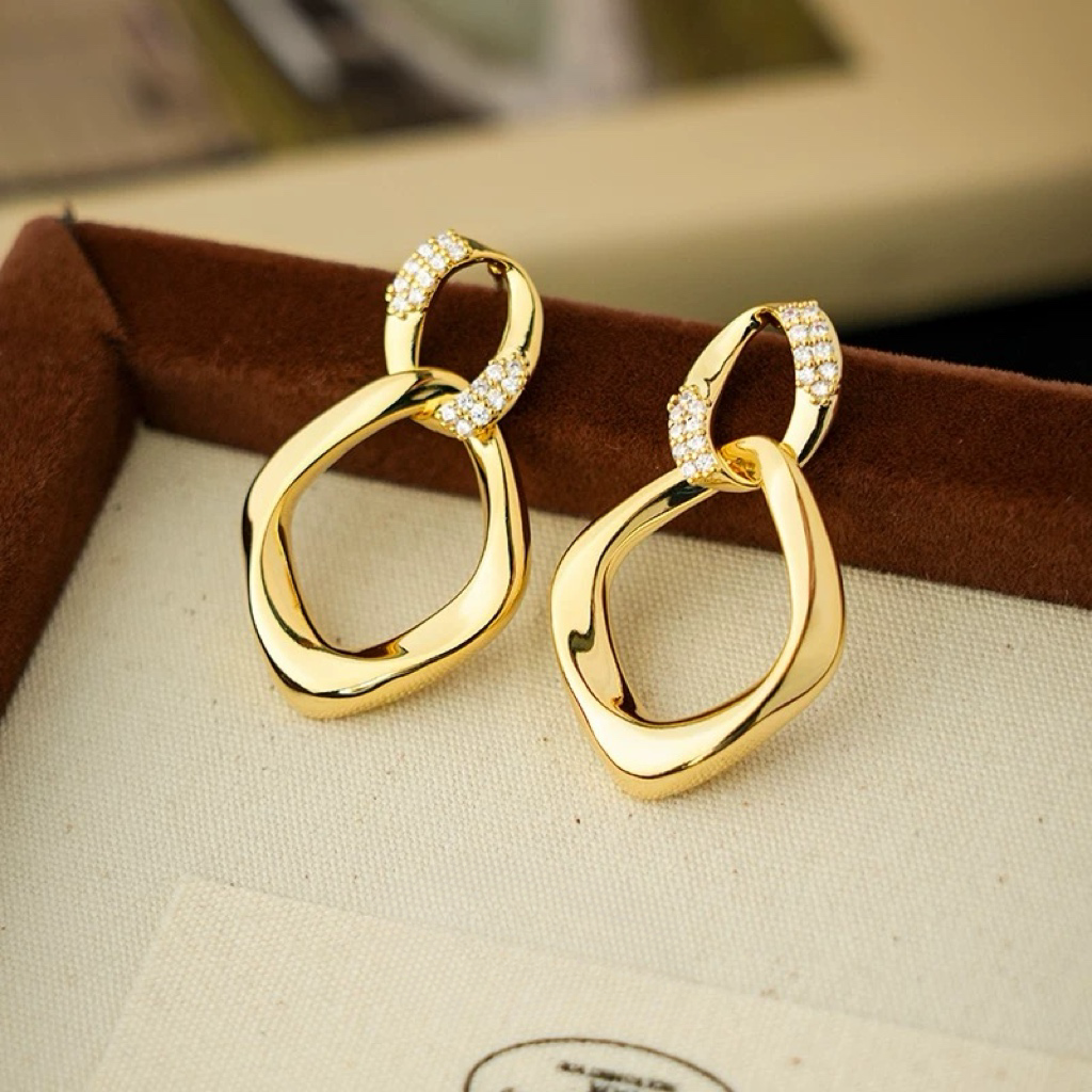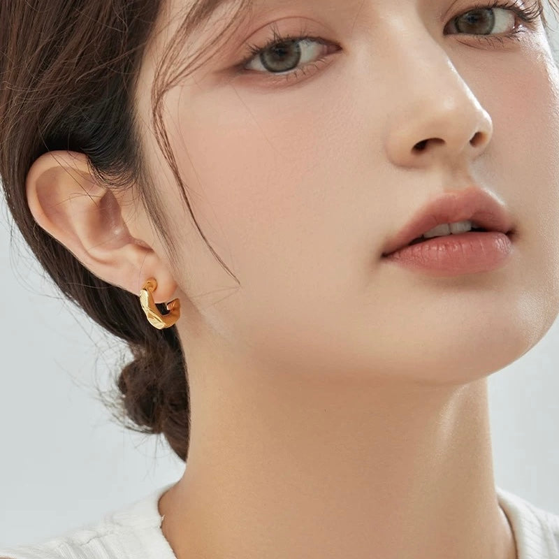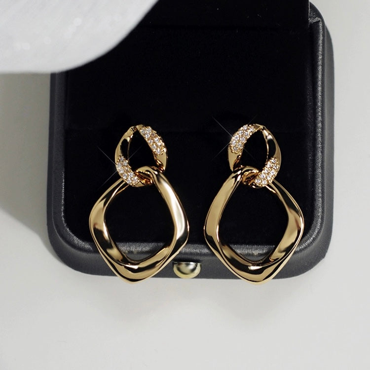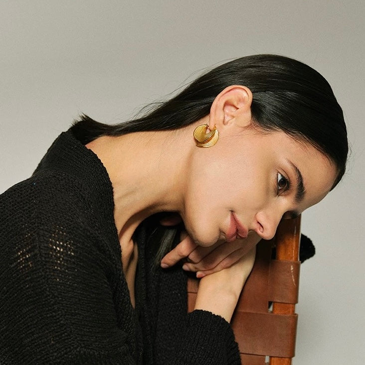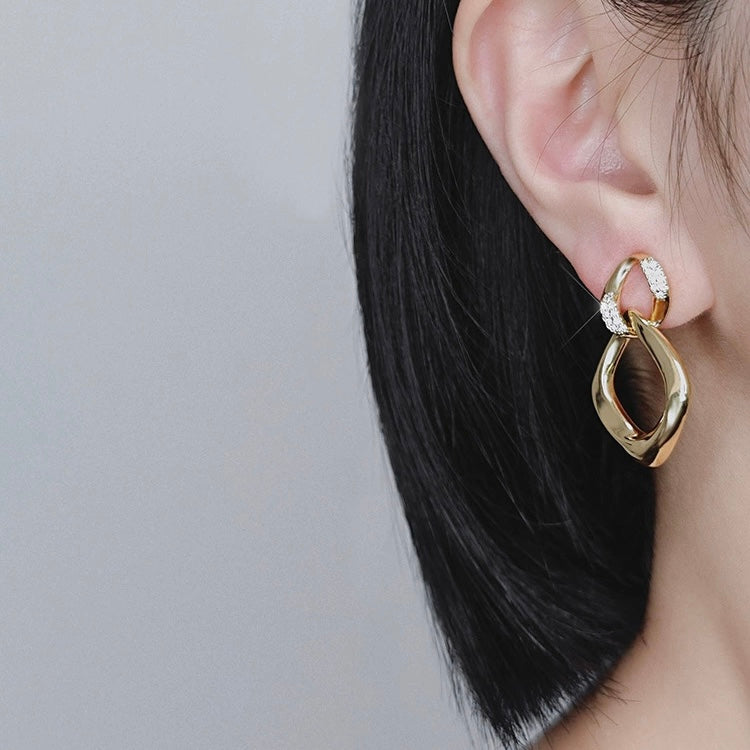 Irregular Pleated Geometric C-shaped Diamond Studded Snowflake Earrings